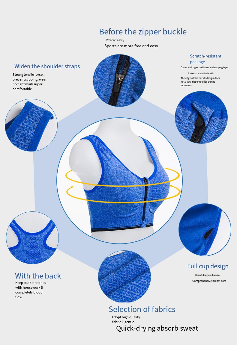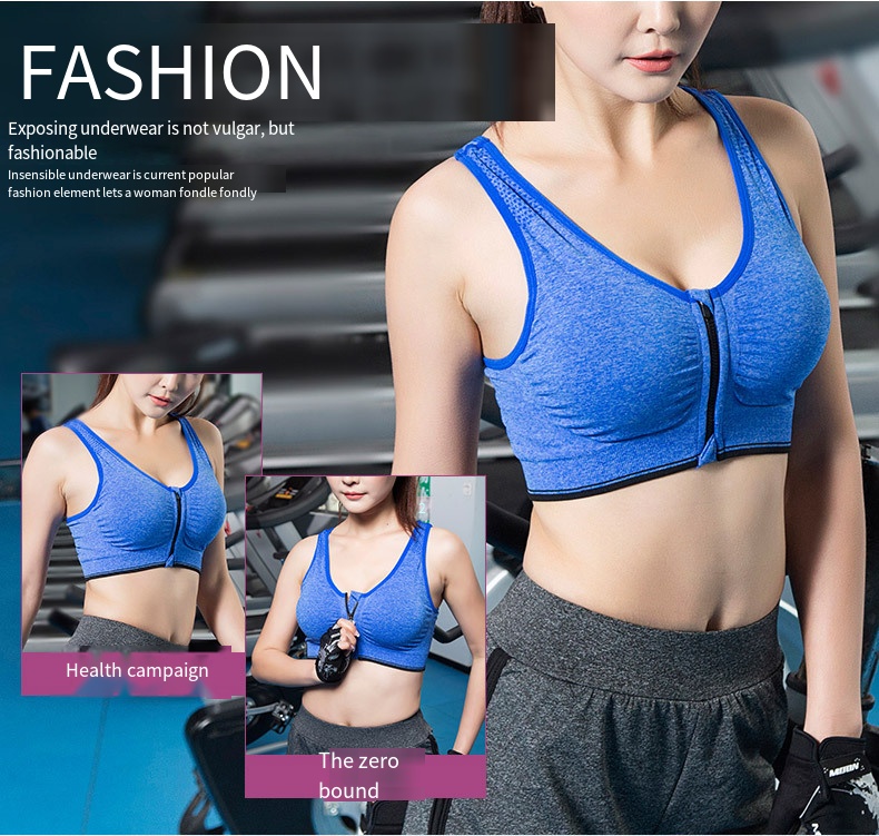 Front zipper sports bra professional shockproof breathable rimless running vest yoga sports underwear women