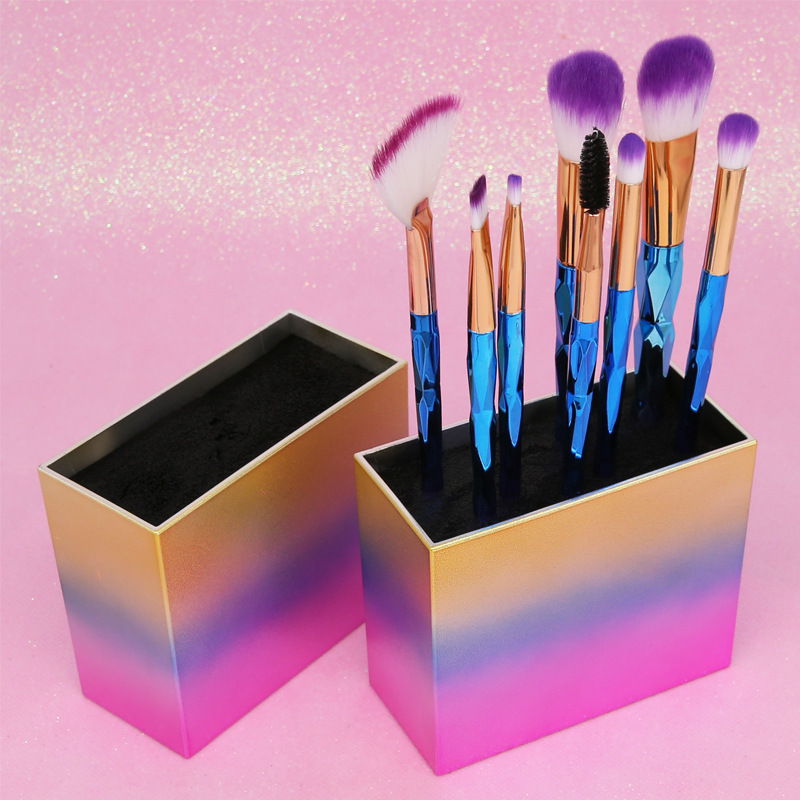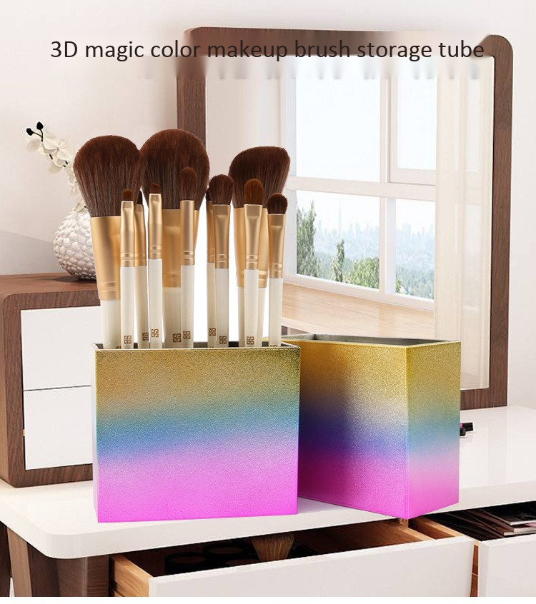 new cosmetic brush tube colorful gradient plastic makeup brush storage bucket square storage display tube wholesale