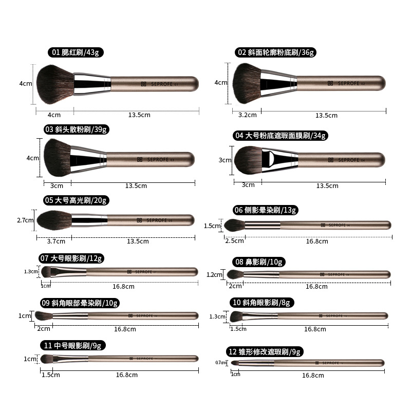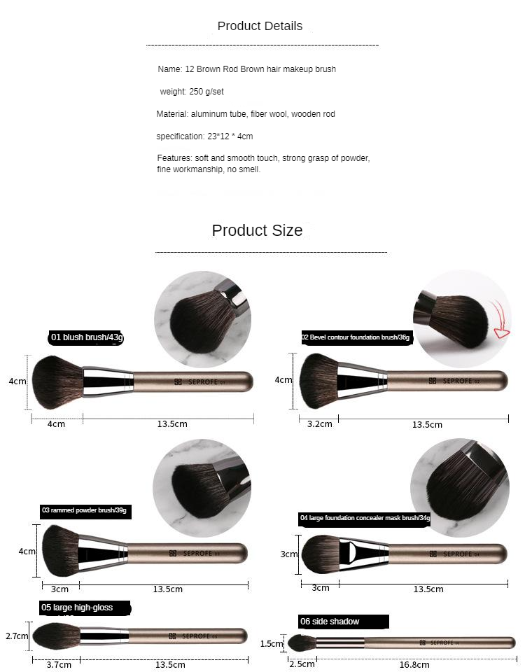 Product Name: A: 12 pole brown hair makeup brush set B: 12 pole brown hair makeup brush set se