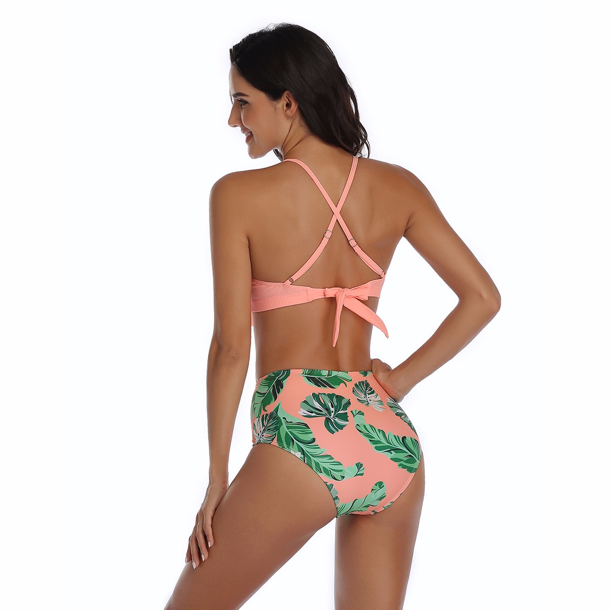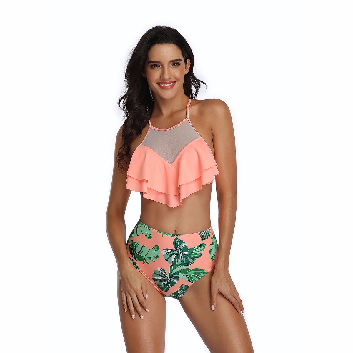Women Retro Flounce High Waisted Bikini Halter Neck Two Piece Swimsuit