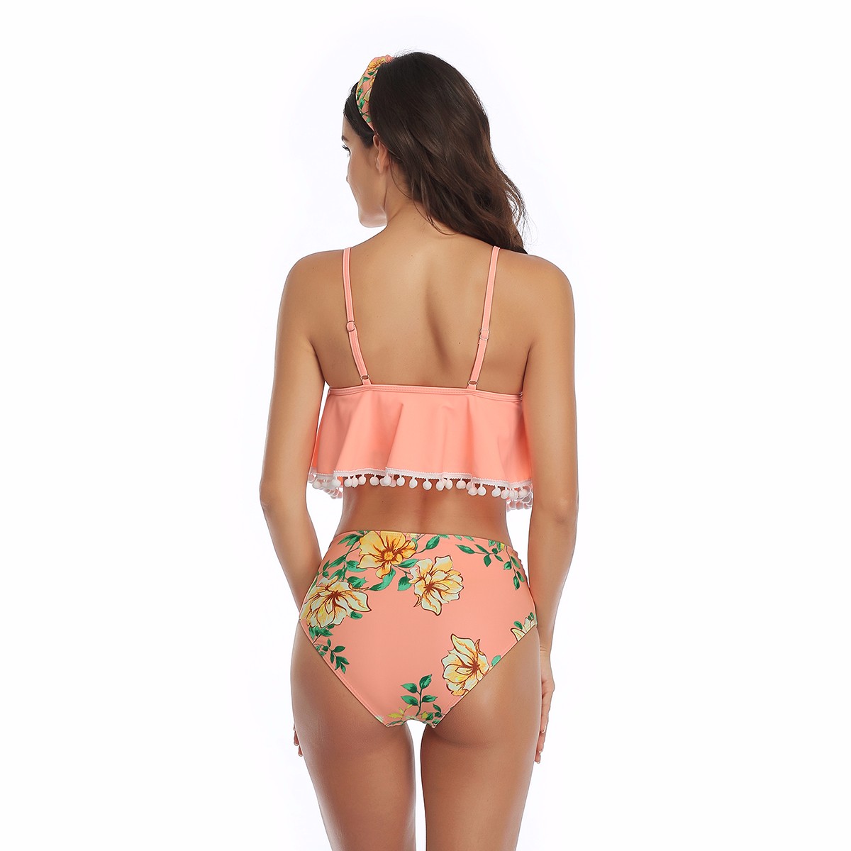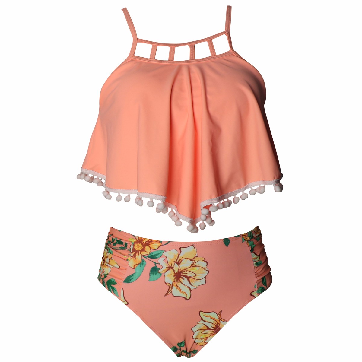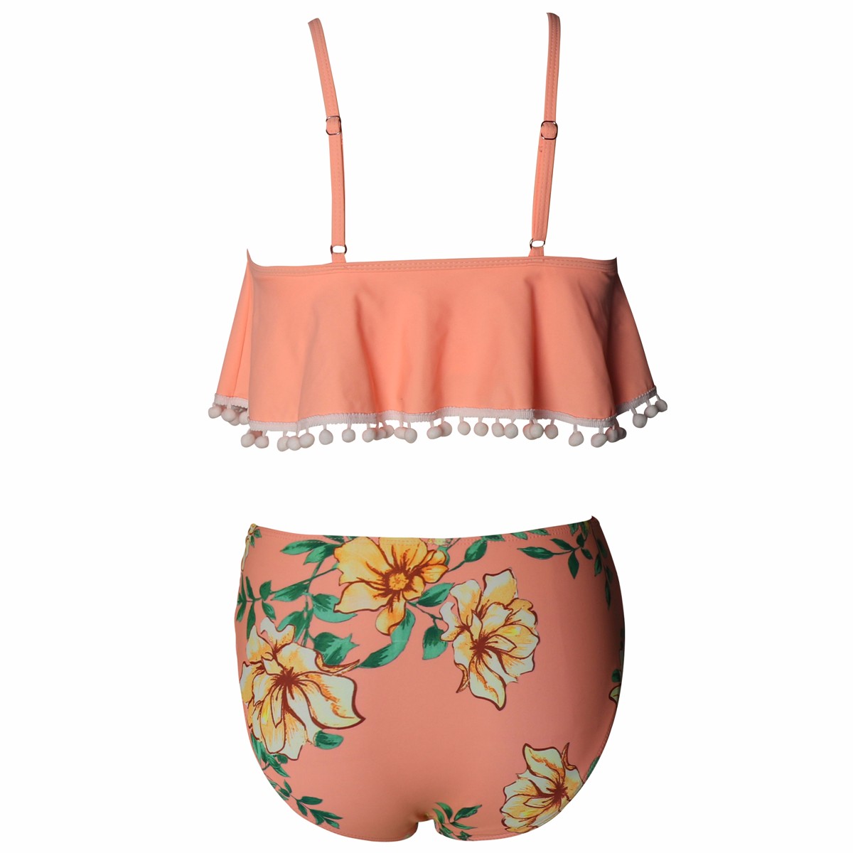 Women's Bikini Swimsuit Two Pieces Swimsuits High Waisted Cute Flounce Pom Trim Bathing Suit
