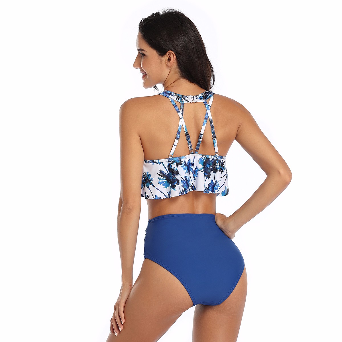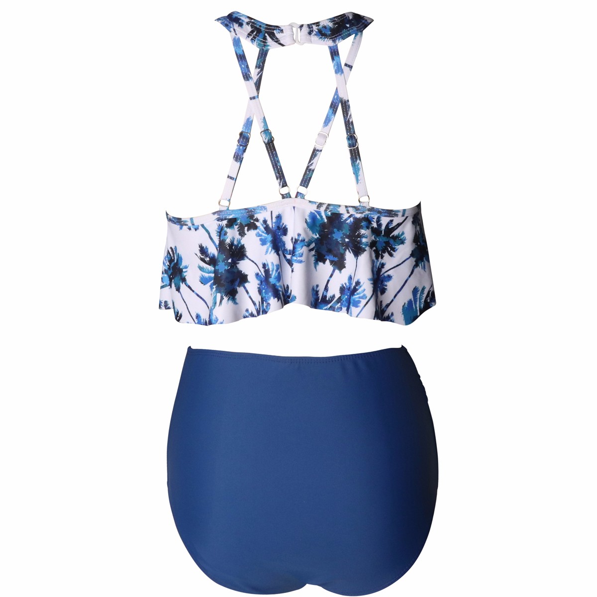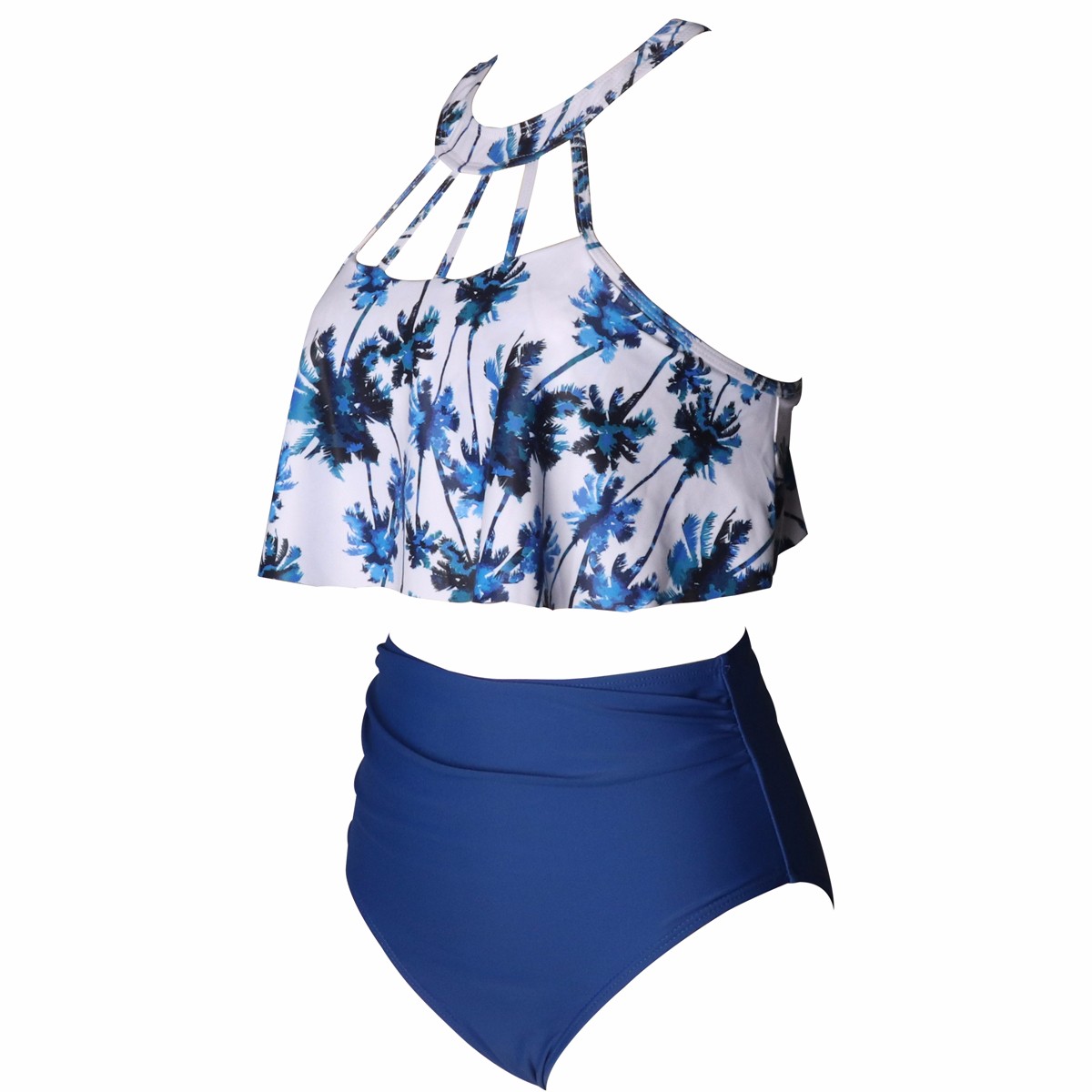 Women's Retro Flounce High Waisted Bikini Halter Neck Two Piece Swimsuit