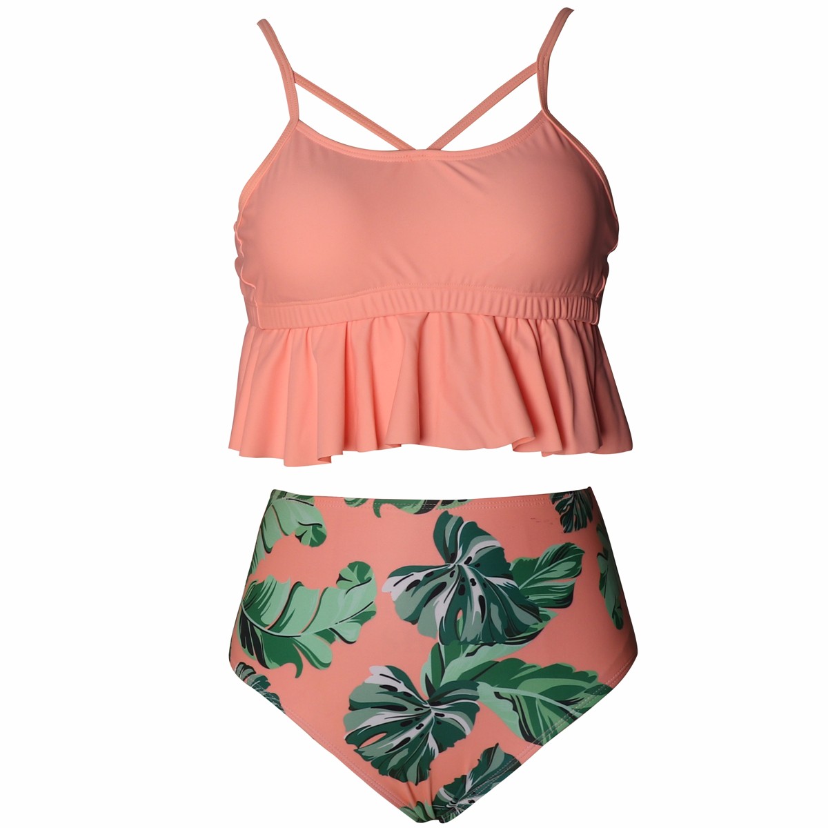 Women's Ruffle Bikini Swimsuit High Waisted Bottom Plus Size Swimwear Tankini