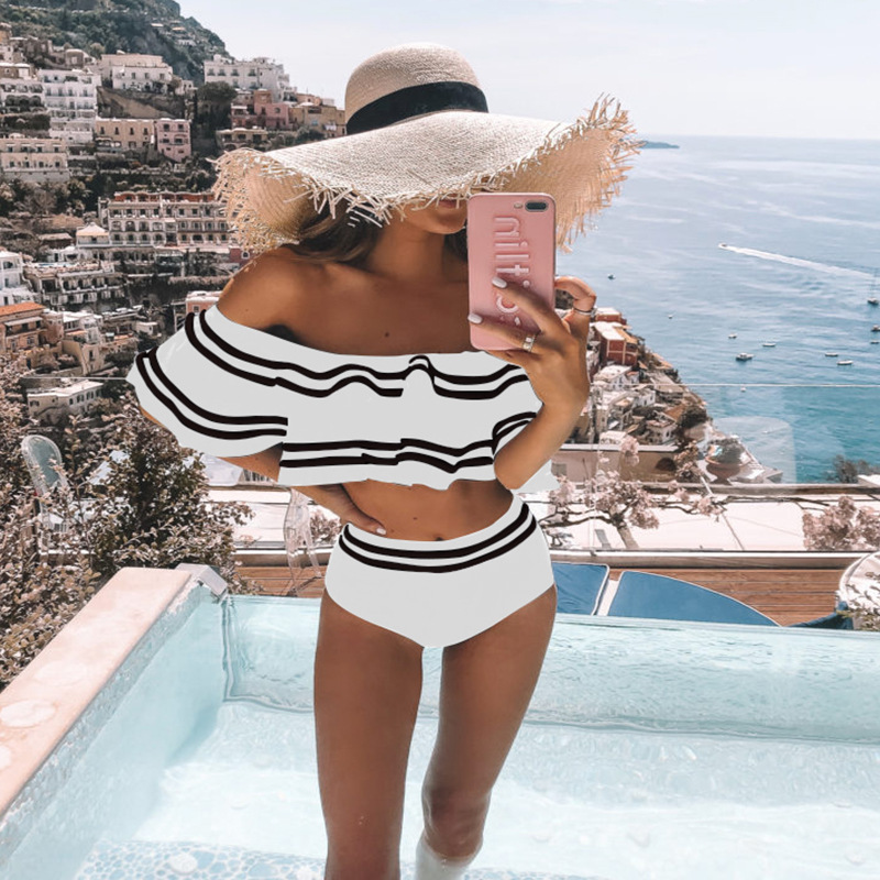 Women's Ruffle Bikini Swimsuit High Waisted Bottom Plus Size Swimwear Tankini